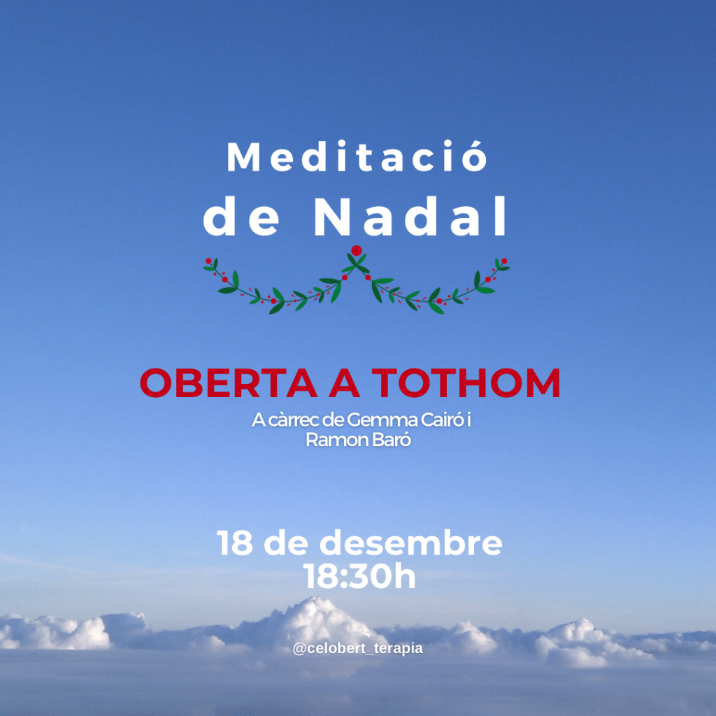 Aquest curs hem encetat el grup de meditació setmanal Espai presència i volem celebrar aquesta iniciativa fent del Nadal un motiu d’alegria i encontre també a Celobert. Per això el dijous 18 de desembre a les 18.30h obrirem les portes d’Espai Presència a tothom que vulgui compartir una meditació per encarar aquestes festes més connectats amb nosaltres mateixos i els qui ens envolten.